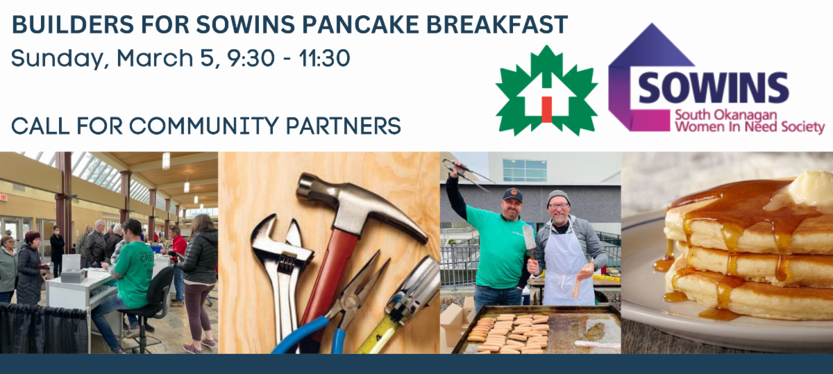 Penticton Trade & Convention Centre 273 Power Street, Penticton, British Columbia, CanadaHelp the CHBA and Home Hardware Building Center Penticton support SOWINS. Join us for the Builders for SOWINS Pancake Breakfast at the Penticton Home and Reno Show on March 5,